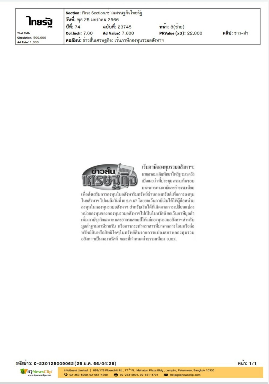 ข่าวประจำวันที่ 25 มกราคม 2566
